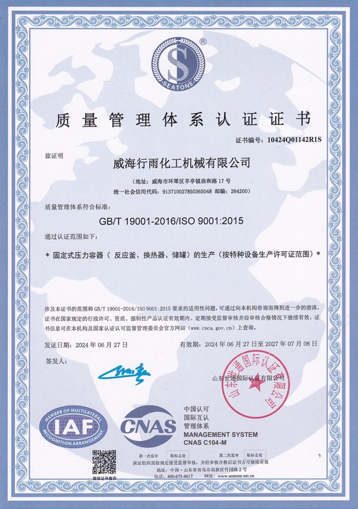 質(zhì)量管理體系認(rèn)證證書